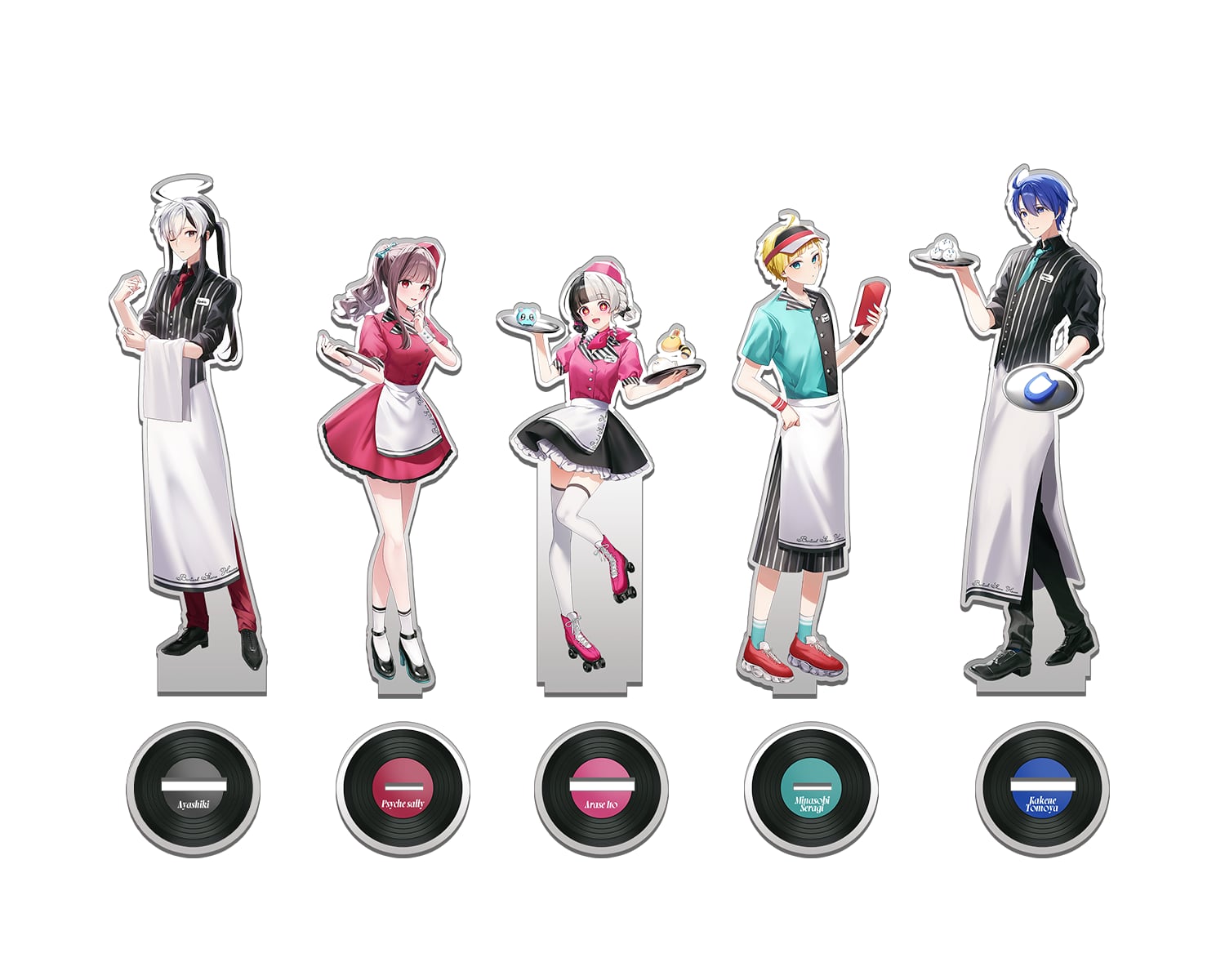 アメリカンダイナー風の衣装をまとったUTAUキャラクター達のアクリルスタンドです。
