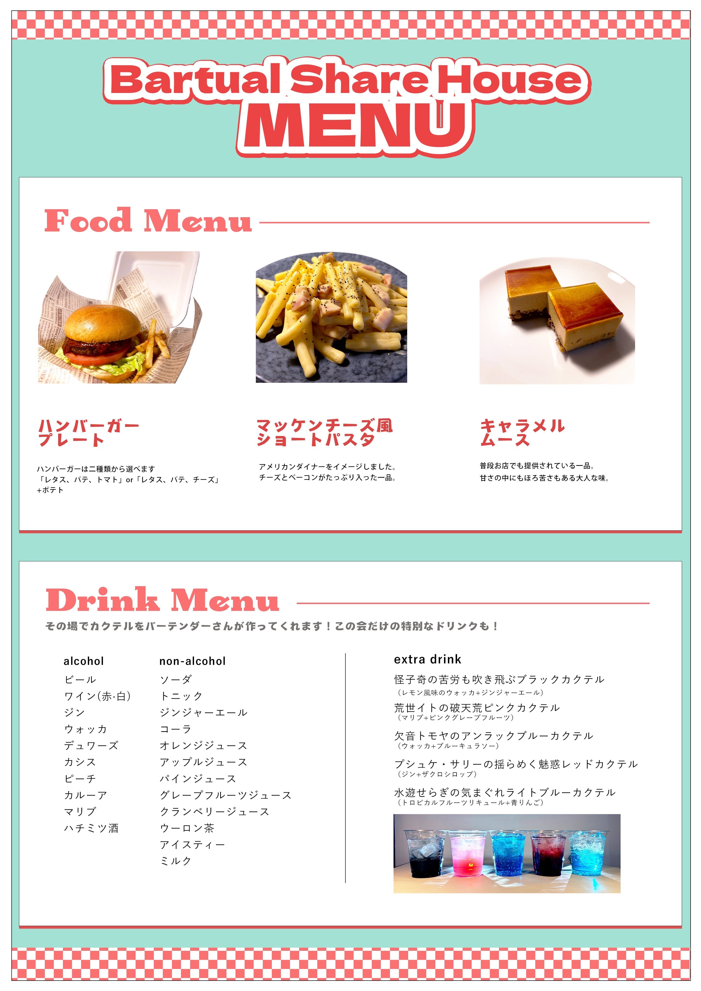 MENU | Barチャルシェアハウス